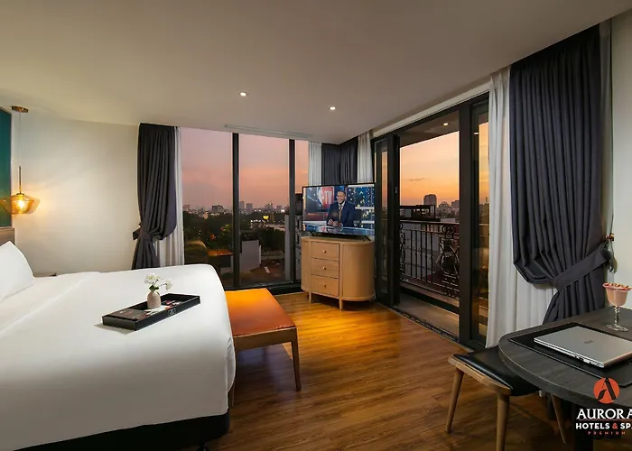 ショッピングエリア とレストランを提供する4つ星Aurora Premium - A Lifestyle Hotel ハノイ市は、古い近所に位置し、ベトナム女性博物館からわずか1.6kmで、ハノイ美術博物館などの文化的な名所から歩いて20分です。 ハノイ市の中心に位置するホテルは、滞在中46の客室とプールバーがあります。